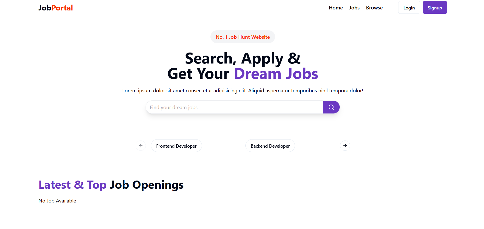 Job PortalA full-stack MERN job portal application designed to streamline the hiring process for recruiters and candidates. Recruiters can manage job postings while candidates can browse, apply, and track applications. The platform includes authentication, role-based access, dashboards, and scalable REST API architecture.
